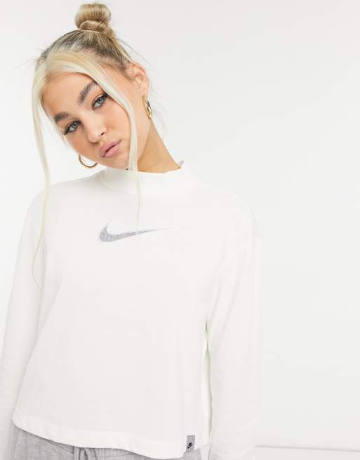 Nike cropped long sleeve t-shirt in white with roll neck
