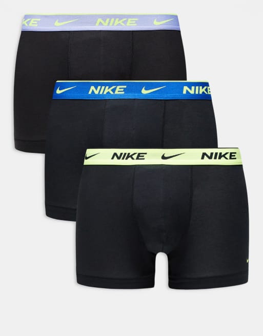 Nike Essential cotton 3 pack trunks in black with lavender/blue/green