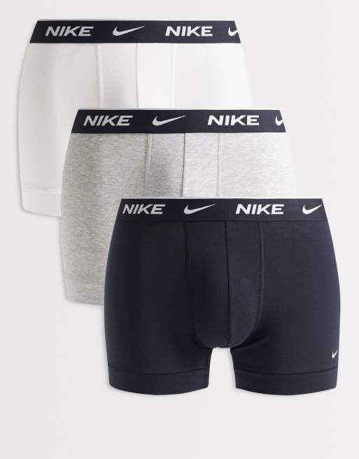 Nike Essential Cotton Stretch 3 pack trunks in black/grey/white