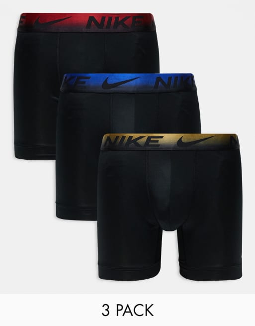 Nike Essential Microfibre 3 pack boxer brief with coloured waistband in red/gold/blue