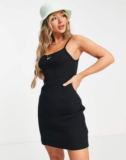 Nike Essential mini swoosh ribbed dress in black