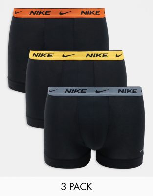 Nike Everyday Cotton Stretch trunks 3 pack in black contrast waistband