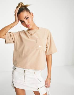 Nike everyday modern boxy crop t-shirt in hemp brown