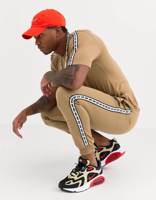 Nike logo taping cuffed joggers in sand