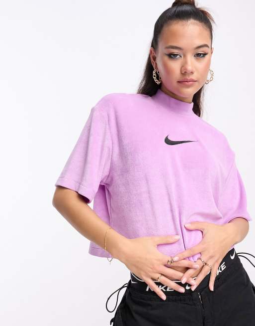 Nike midi swoosh mock terry crop t-shirt in rush fuchsia