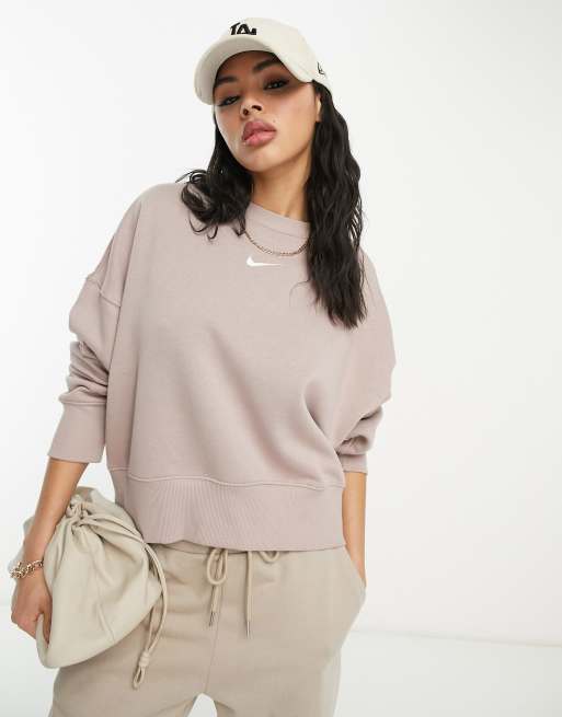 Nike Mini Swoosh extra oversized crop sweatshirt in taupe