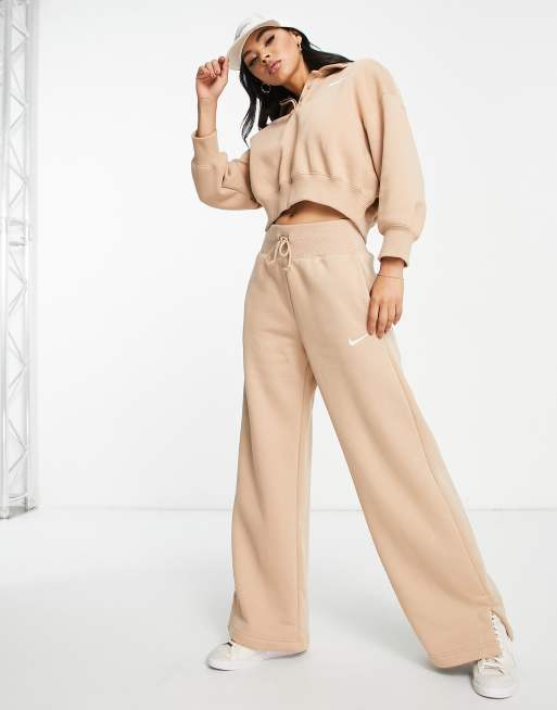 Nike mini swoosh high rise wide leg joggers in hemp brown