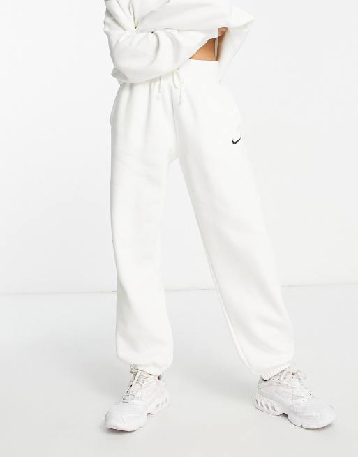 Nike mini swoosh oversized high rise joggers in sail white