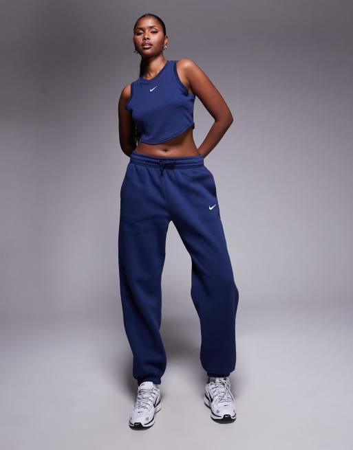 Nike Phoenix Fleece high waisted oversized cuffed joggers in navy