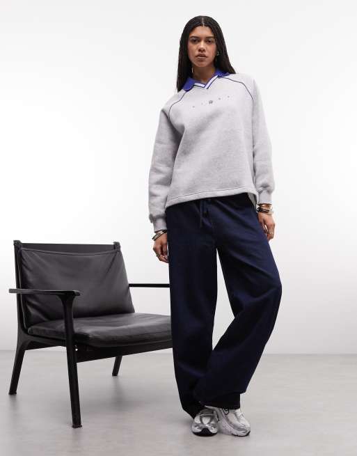 Nike Phoenix Fleece oversized polo in light grey and navy
