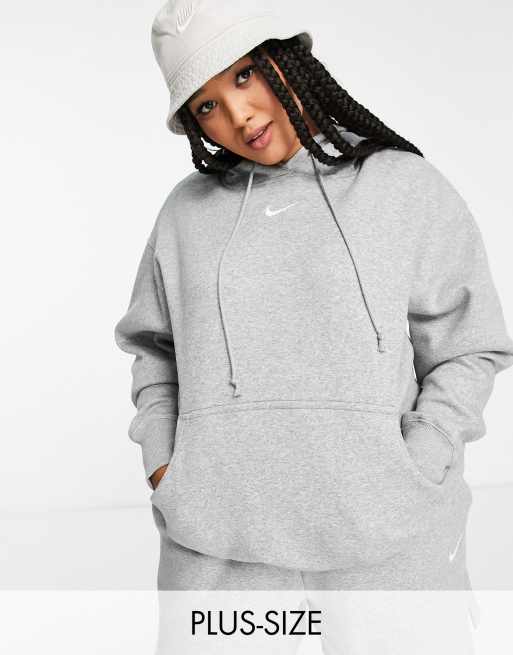 Nike Plus mini swoosh oversized pullover hoodie in grey and sail