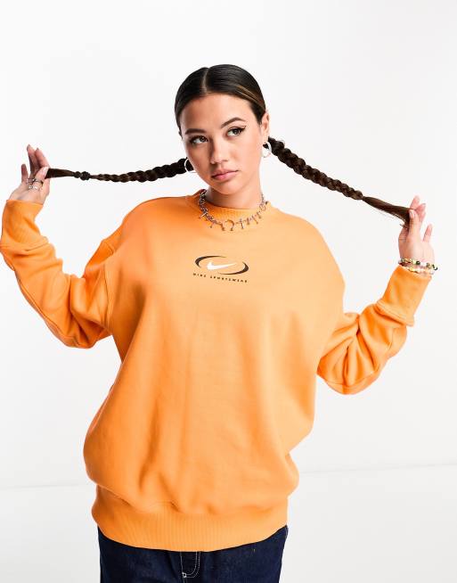 Nike Swoosh oversized fleece sweatshirt in bright mandarin orange