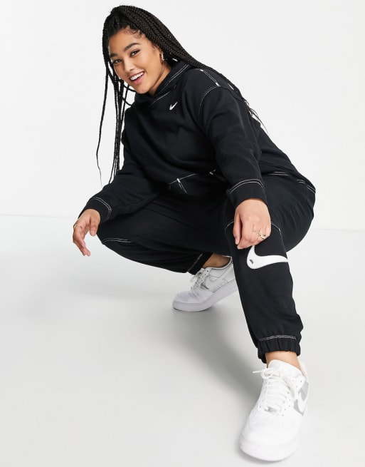 Nike Swoosh Plus contrast stitch fleece tracksuit in black