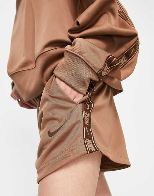 Nike swoosh tape shorts in archaeo brown