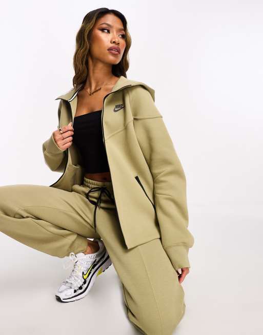 Nike Tech Fleece full zip hoodie in neutral olive green