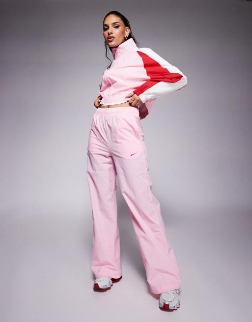 Nike Trend woven windrunner jacket and wide leg trouser in pink and red