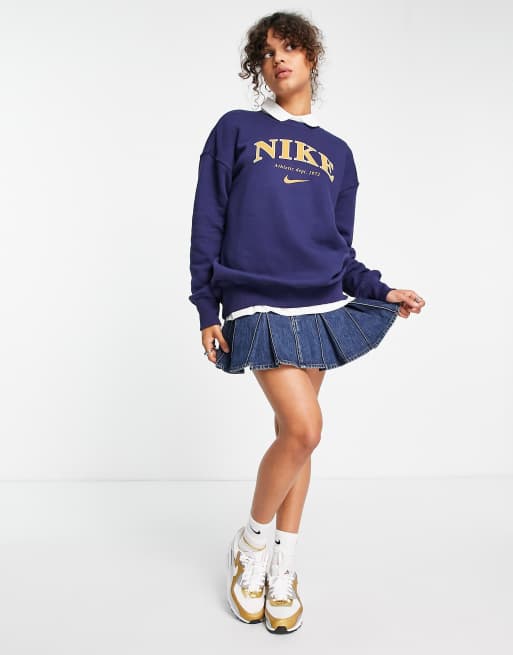 Nike Unisex retro athletics fleece crew sweatshirt in midnight navy and gold