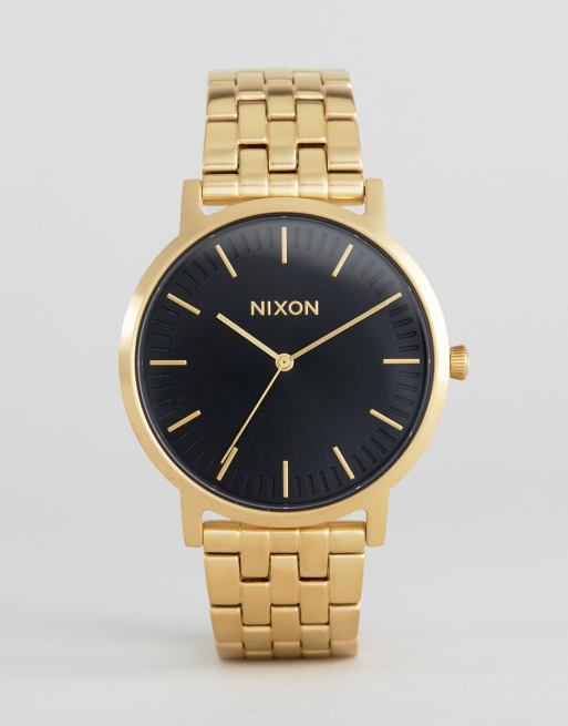 Nixon Porter Gold Bracelet Watch With Black Sunray Dial