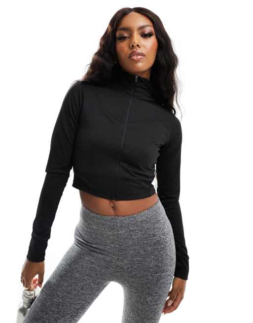 4505 - Active - Cropped hoodie met fleece aan de binnenkant in zwart