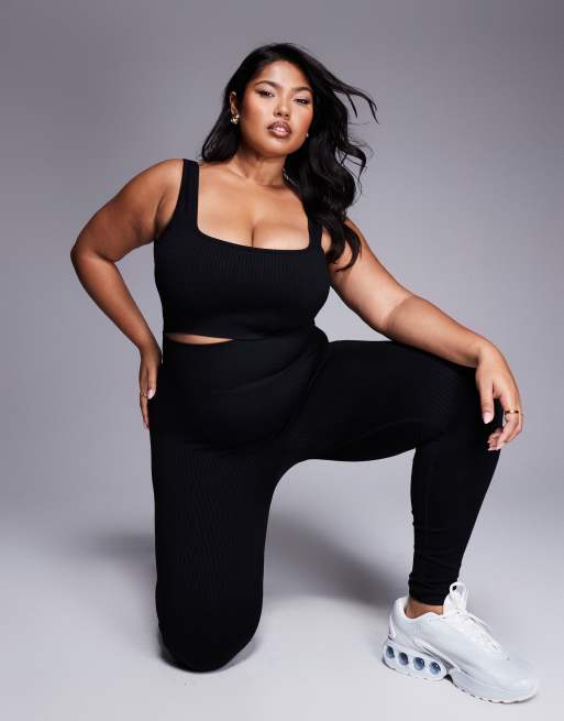 4505 - Curve - Icon - Naadloze geribbelde sport-bh met vierkante hals en medium ondersteuning in zwart