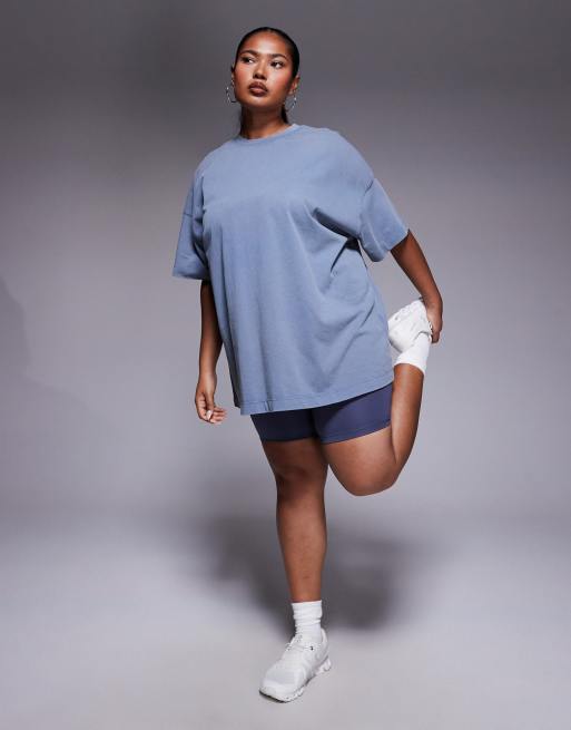 4505 - Curve - Icon - Recht oversized trainings T-shirt van zware katoen met sneldrogende eigenschappen in blauw met wassing