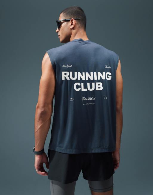 4505 - Hardlopen - Oversized tanktop met print op de achterkant in donker marineblauw