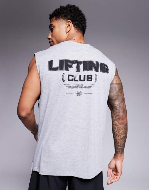 4505 - Icon - Oversized trainingstanktop van sneldrogend katoen met print op de rug in grijs