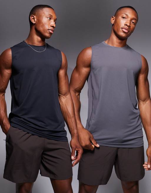 4505 - Icon - Set van 2 mouwloze, sneldrogende trainingstanktops in zwart en antraciet