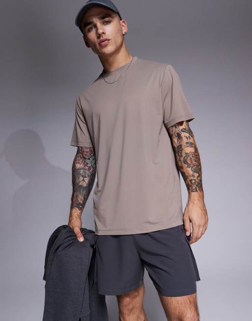 4505 - Icon - Sneldrogend trainings-T-shirt in taupe grijs .