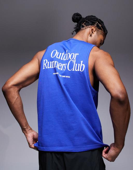 4505 - Sneldrogend katoenen hemdje met 'Outdoor Runners'-print op de achterkant in kobaltblauw