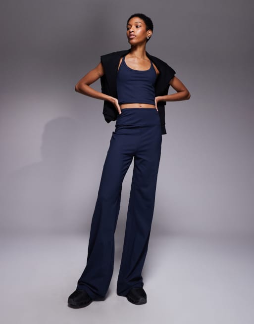 4505 Tall - Icon - Zachte dansbroek met wijde pijpen en hoge taille in middernacht marineblauw