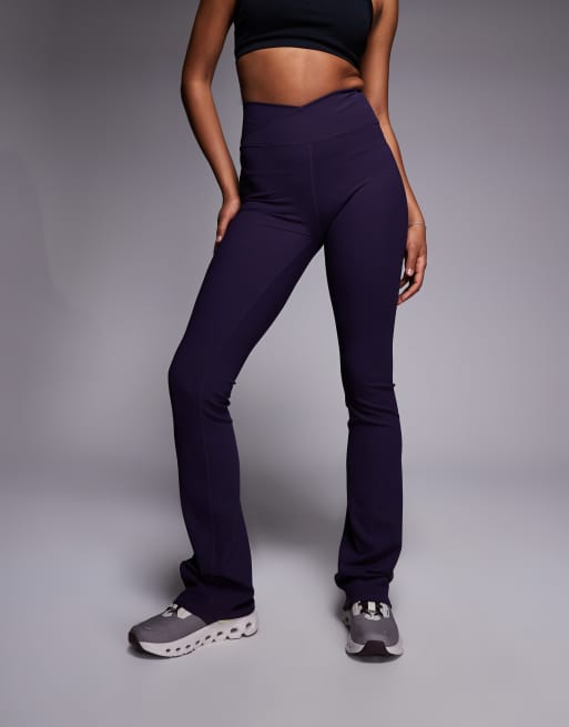 4505 Tall - Slim-fit kick-flare yogalegging van geribbelde micro en taille met overslag in paars