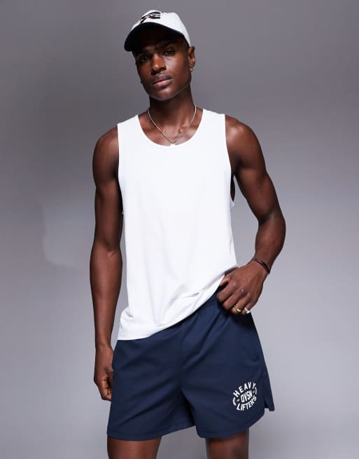 4505 - Trainingsshort van 13 cm van sneldrogend mesh met wijde pijpen en grafische print in marineblauw