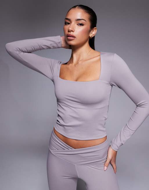 4505 - Zacht aanvoelende top met vierkante hals en lange mouwen in nertsgrijs