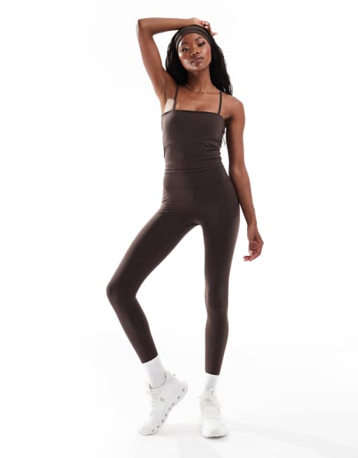 4505 - Zachte sportlegging met hoge taille in chocoladebruin