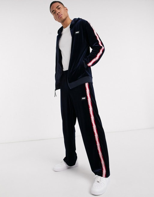 ASOS 4505 - Velours trainingspak met bies in marineblauw