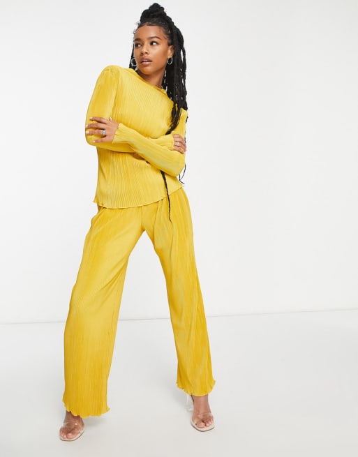 4th & Reckless - Petite - Plissé co-ord set in mosterdgeel