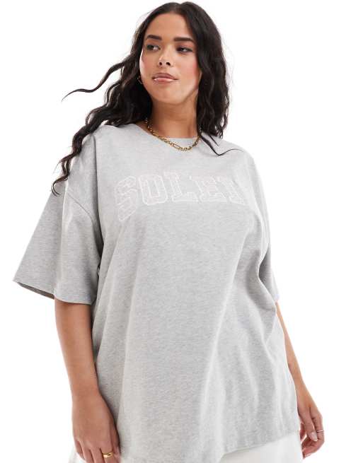 4th & Reckless Plus - Exclusive - Oversized T-shirt met geborduurd 'Soleil'-logo in grijs