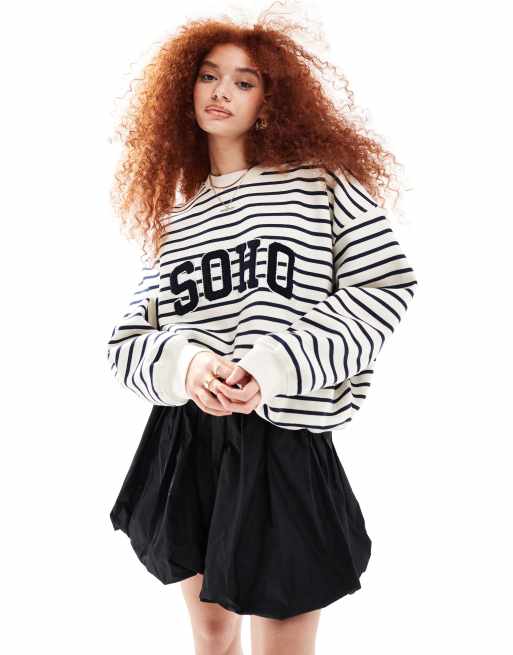 4th & Reckless - Bouclé gestreept sweatshirt met Soho-logo in crème en marineblauw