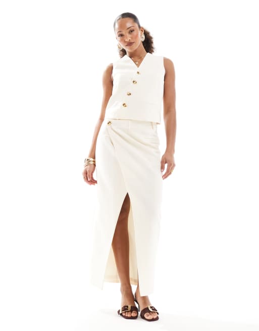 4th & Reckless - Co-ord set van getailleerd asymmetrisch gilet met gouden knopen en maxi rok in crème