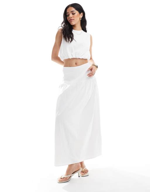 4th & Reckless - Co-ord set van poplin crop top met structuur en maxi rok in crème