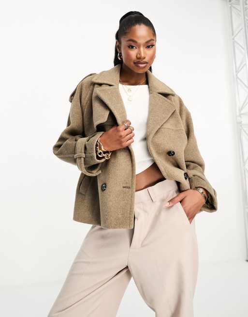 4th & Reckless - Cropped net jack met wollook in lichtbruin