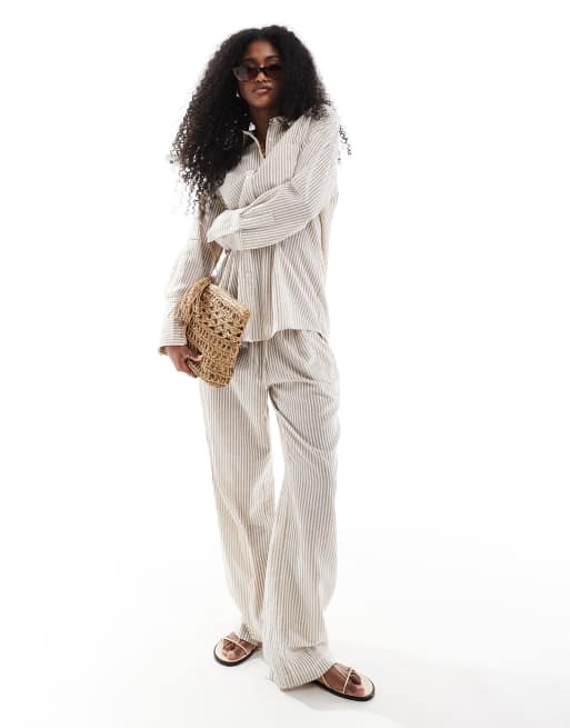 4th & Reckless - Gestreepte co-ord set van lichtgewicht linnen van overhemd en broek in beige