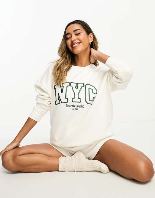 4th & Reckless - Lori - Lounge sweatshirt met NYC-print in crème