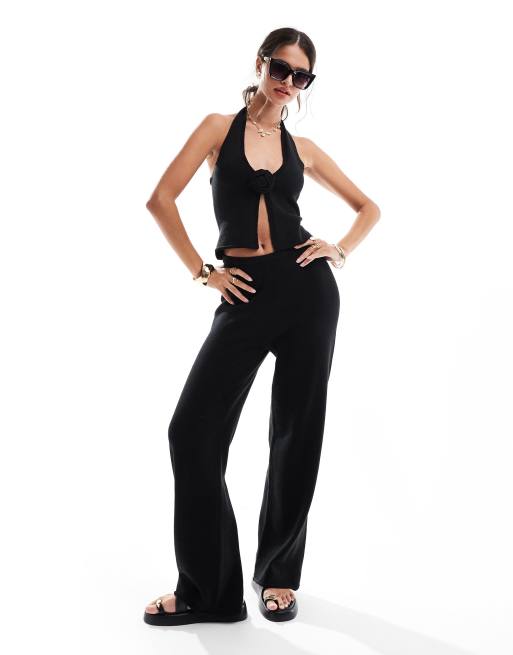 4th & Reckless - Maribel - Fijngebreide co-ord set van top en broek in zwart