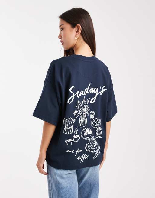 4th & Reckless - Oversized T-shirt met hoog katoengehalte en geborduurd logo en grafisch 'Sunday'-print op de achterkant in marineblauw