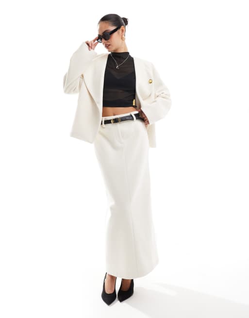 4th & Reckless - Rechte maxi rok in crème, deel van co-ord set