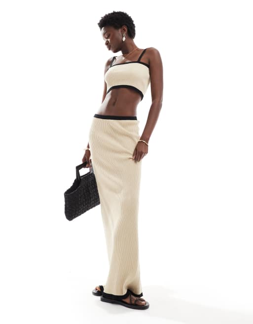 4th & Reckless - Ribgebreide maxi strandrok met contrasterende afwerking in crème, deel van co-ord set