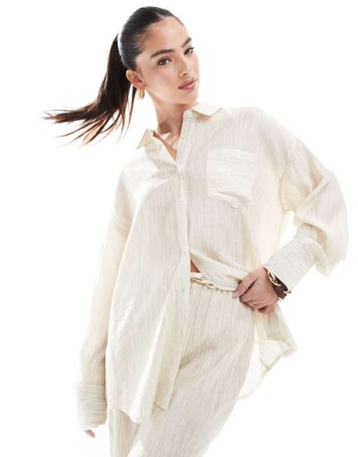 4th & Reckless - Strandoverhemd met textuur en knoopsluiting in beige, deel van co-ord set
