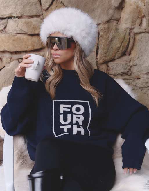 4th & Reckless x Felicia Wedin - Apres Ski - Jacquard gebreide trui met logo in marineblauw